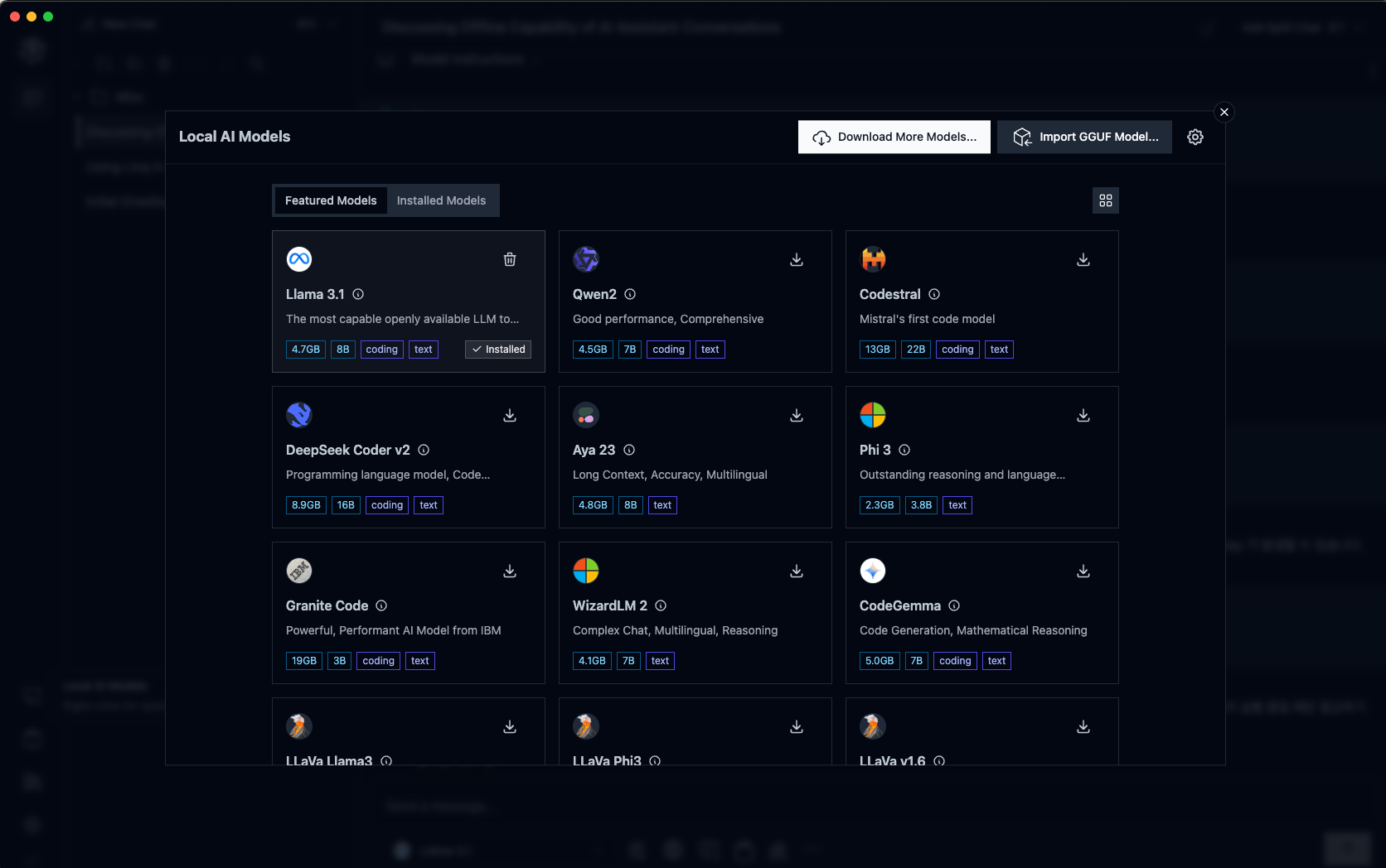 설치가 가능한 ai 챗봇들을 보여주는데 여기서 라마 3.1을 선택해서 설치할 수 있다.