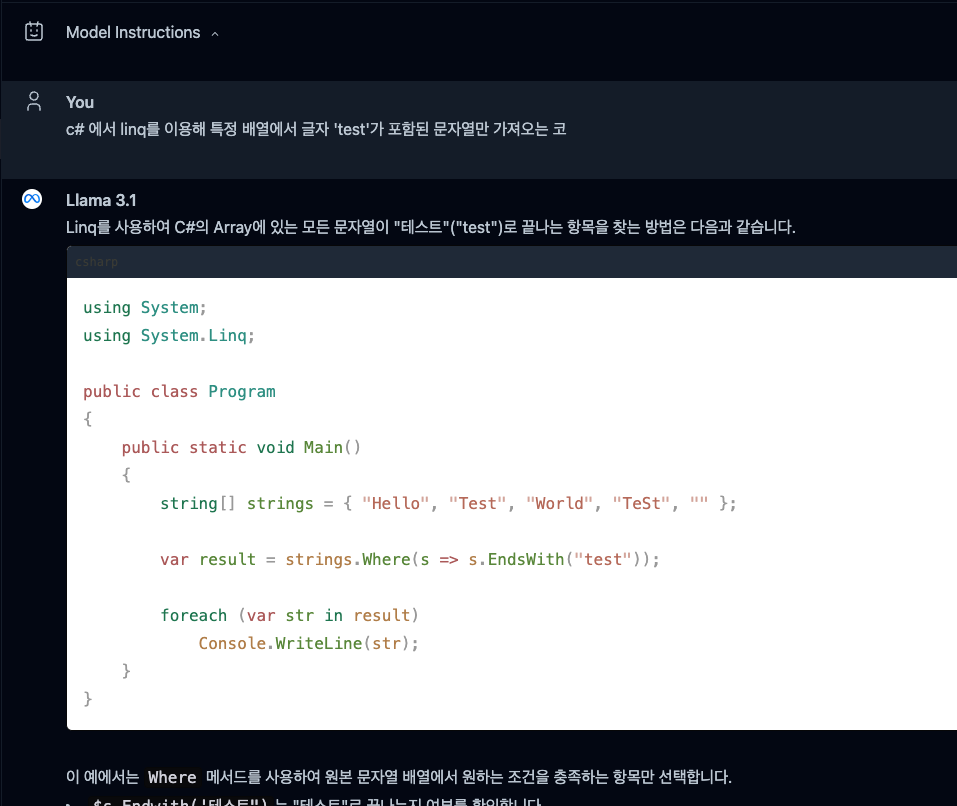 맥미니 m2 pro에 라마 3.1 8B를 설치했다. 용량은 약 5GB 정도, 찾아보니 이 기기에는 이게 최선이다.