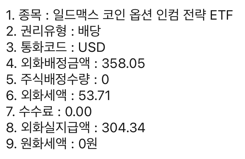 분배금은 한주당 $0.651을 받았다. 세금을 떼면 한주당 0.55335달러다.